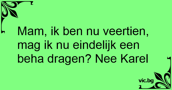 Mam, ik ben nu veertien, mag ik nu eindelijk een beha dragen? Nee Karel
