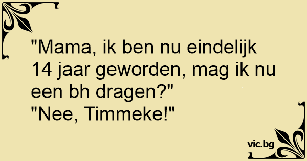 "Mama, ik ben nu eindelijk 14 jaar geworden, mag ik nu een bh dragen?"