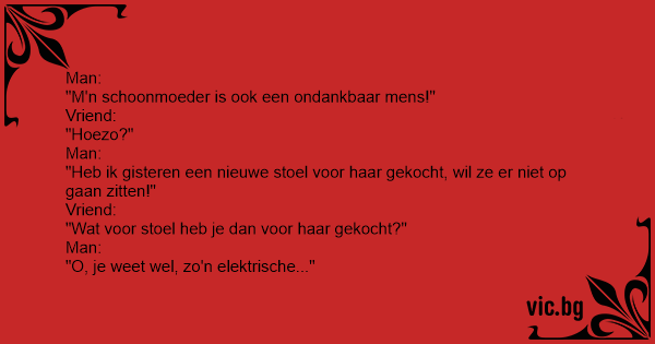 A férj és a feleség vásárolgatnak. A feleség megkérdezi a férjet: - Drágám, holnap lesz anyukám szülinapja. Mit vegyünk neki? Valami elektromos dolgot szeretne. - Mit szólnál egy székhez?
