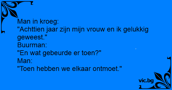 - I tjugo år, sa mannen i baren vemodigt, var min fru och jag fullkomligt lyckliga. - Vad hände sen? frågade bartendern. - Vi träffades.