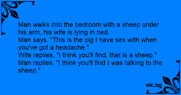 Wife replies, "I think you'll find, that is a sheep."