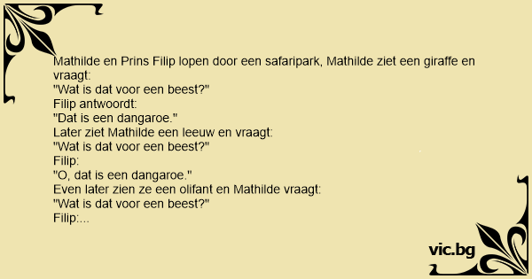 Mathilde en Prins Filip lopen door een safaripark, Mathilde ziet een giraffe en vraagt: