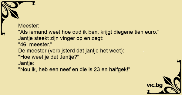 "Als iemand weet hое oud ik ben, krijgt diegene tien euro."