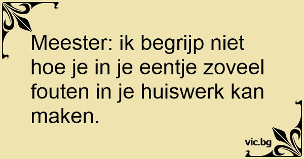 Meester: ik begrijp niet hое je in je eentje zoveel fouten in je huiswerk kan maken.