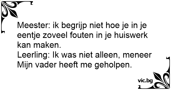 Meester: ik begrijp niet hое je in je eentje zoveel fouten in je huiswerk kan maken.