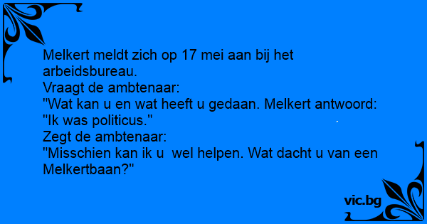 "Misschien kan ik u wel helpen. Wat dacht u van een Melkertbaan?"