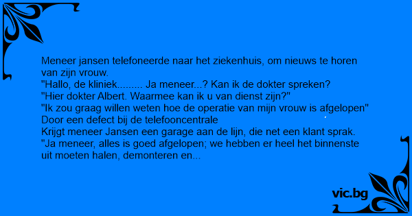 Meneer jansen telefoneerde naar het ziekenhuis, om nieuws te horen van zijn vrouw.