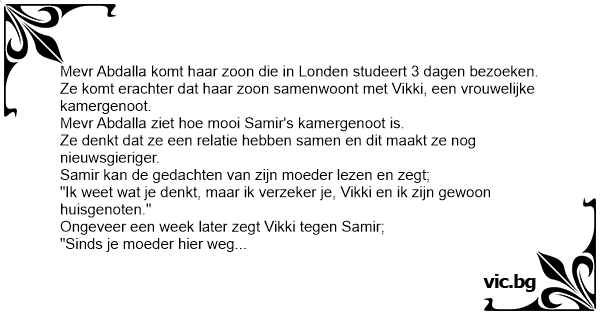 Mevr Abdalla komt haar zoon die in Londen studeert 3 dagen bezoeken. Ze komt erachter dat haar zoon samenwoont met Vikki, een vrouwelijke kamergenoot.