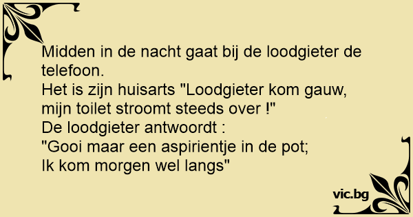 Het is zijn huisarts "Loodgieter kom gauw, mijn toilet stroomt steeds over !"