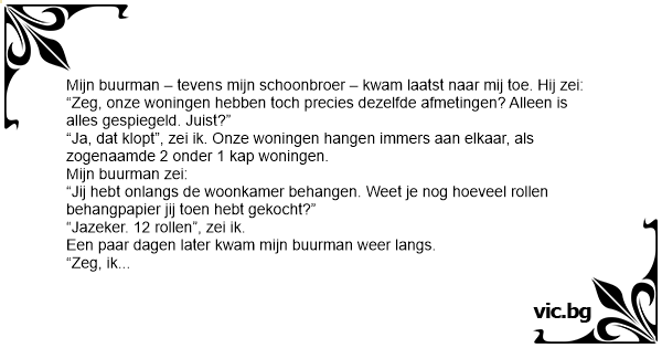 “Zeg, ik heb 12 rollen gekocht, en heb behangen. Maar ik had wel 7 rollen over!”