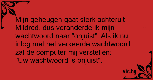 Mijn geheugen gaat sterk achteruit Mildred, dus veranderde ik mijn wachtwoord naar "onjuist". Als ik nu inlog met het verkeerde wachtwoord, zal de computer mij verstellen: