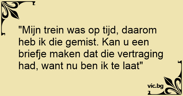 "Mijn trein was op tijd, daarom heb ik die gemist. Kan u een briefje maken dat die vertraging had, want nu ben ik te laat"