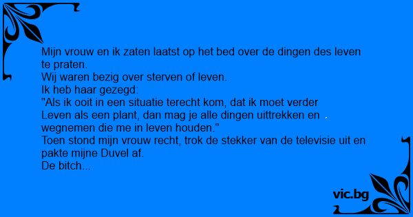 Mijn vrouw en ik zaten laatst op het bed over de dingen des leven te praten.