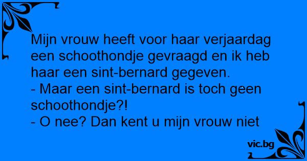 Mijn vrouw heeft voor haar verjaardag een schoothondje gevraagd en ik heb haar een sint-bernard gegeven.