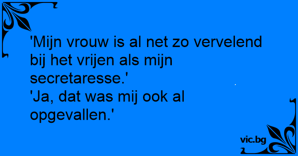 'Mijn vrouw is al net zo vervelend bij het vrijen als mijn secretaresse.'
