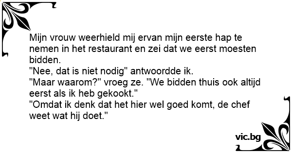 "Maar waarom?" vroeg ze. "We bidden thuis ook altijd eerst als ik heb gekookt."