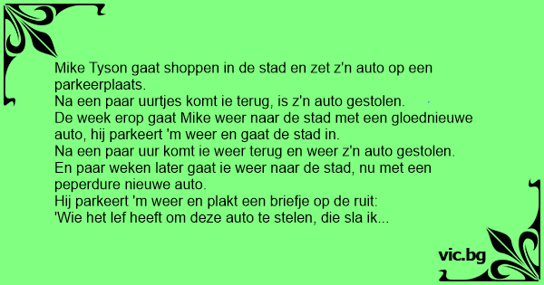 'Wie het lef heeft om deze auto te stelen, die sla ik helemaal verrot, getekend Mike Tyson!'