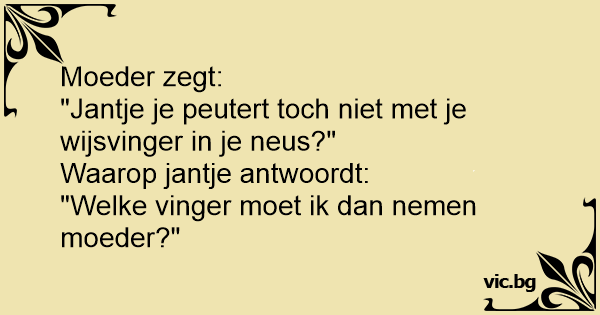 "Welke vinger moet ik dan nemen moeder?"
