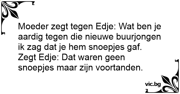 Moeder zegt tegen Edje: Wat ben je aardig tegen die nieuwe buurjongen ik zag dat je hem snoepjes gaf.
