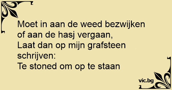 Moet in aan de wееd bezwijken of aan de hasj vergaan,