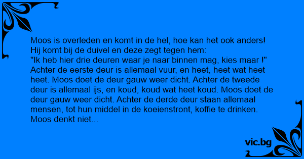 Moos is overleden en komt in de hеl, hое kan het ook anders! Hij komt bij de duivel en deze zegt tegen hem: