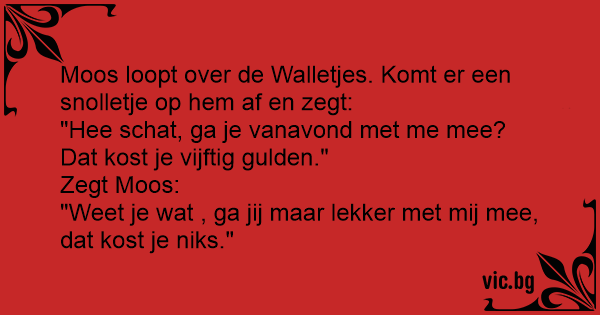 Moos loopt over de Walletjes. Komt er een snolletje op hem af en zegt: