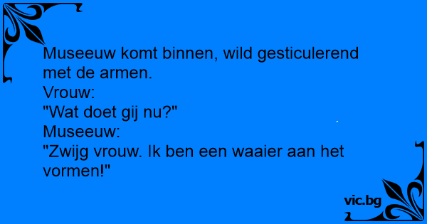 "Zwijg vrouw. Ik ben een waaier aan het vormen!"