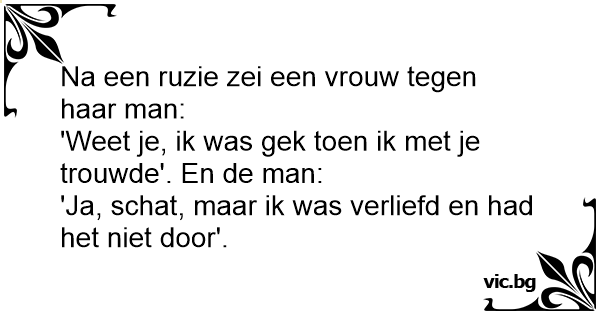 'Weet je, ik was gek toen ik met je trouwde'. En de man: