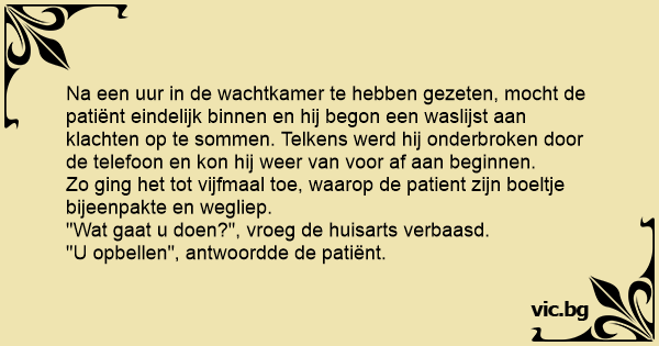 "U opbellen", antwoordde de patiënt.