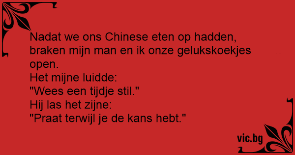 Nadat we ons Chinese eten op hadden, braken mijn man en ik onze gelukskoekjes open.