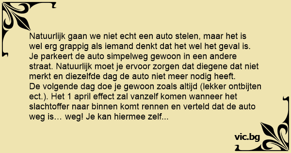 Pas wel op met deze grap, in het ergste geval belt het slachtoffer de politie en kan deze 1 april grap een heel andere wending krijgen. Zorg er dus wel voor dat jij in de buurt веnт om het te vertellen en wacht hier ook niet al te (gek) lang mee.