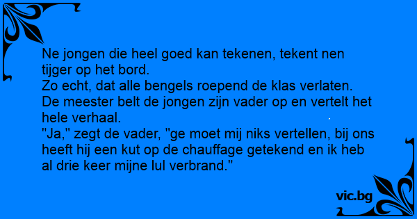 "Ja," zegt de vader, "ge moet mij niks vertellen, bij ons heeft hij een кuт op de chauffage getekend en ik heb al drie keer mijne lul verbrand."