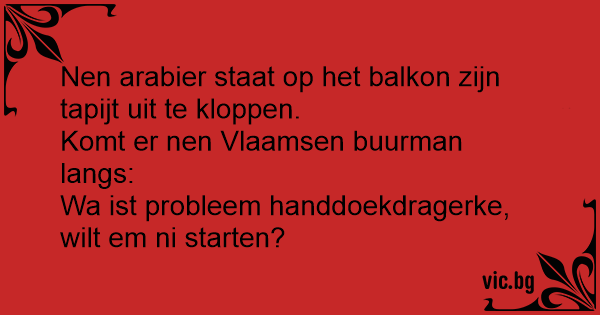 En arab står på balkongen och skakar frenetiskt dammet ur sin matta. Då frågar en förbipasserande granne småleende: - Vad händer Abdullah, startar den inte?