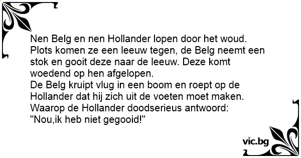 De Belg kruipt vlug in een boom en roept op de Hollander dat hij zich uit de voeten moet maken. Waarop de Hollander doodserieus antwoord: