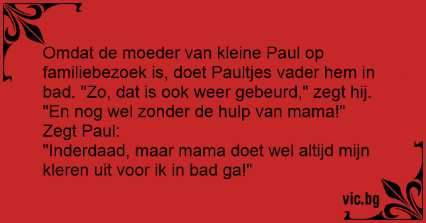 Omdat de moeder van kleine Paul op familiebezoek is, doet Paultjes vader hem in bad. "Zo, dat is ook weer gebeurd," zegt hij. "En nog wel zonder de hulp van mama!" Zegt Paul: