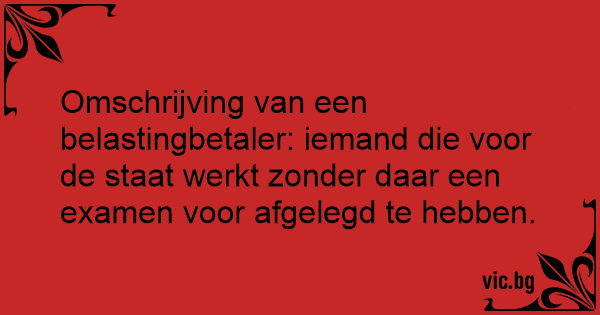 Omschrijving van een belastingbetaler: iemand die voor de staat werkt zonder daar een examen voor afgelegd te hebben.