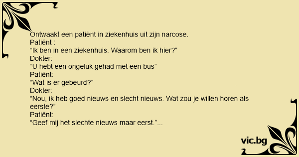 “Nou, ik heb goed nieuws en slecht nieuws. Wat zou je willen horen als eerste?”