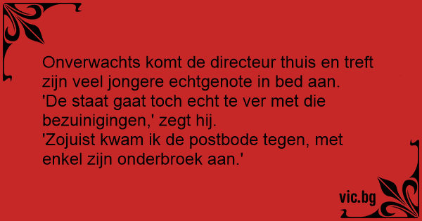 Onverwachts komt de directeur thuis en treft zijn veel jongere echtgenote in bed aan.