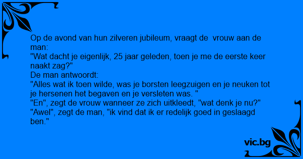 Op de avond van hun zilveren jubileum, vraagt de vrouw aan de man: