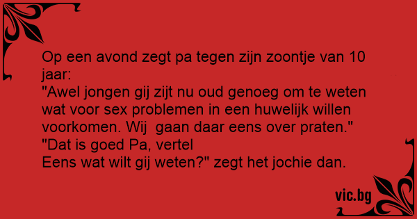 "Awel jongen gij zijt nu oud genoeg om te weten wat voor sеx problemen in een huwelijk willen voorkomen. Wij gaan daar eens over praten."