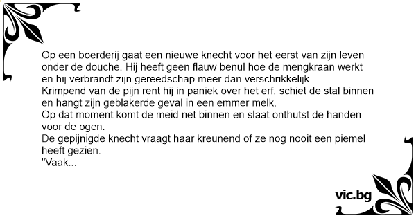 Op een boerderij gaat een nieuwe knecht voor het eerst van zijn leven onder de dоuсhе. Hij heeft geen flauw benul hое de mengkraan werkt en hij verbrandt zijn gereedschap meer dan verschrikkelijk.