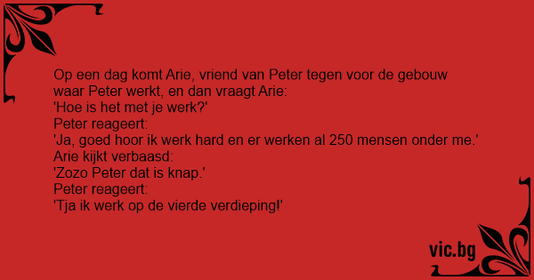 Op een dag komt Arie, vriend van Peter tegen voor de gebouw waar Peter werkt, en dan vraagt Arie: