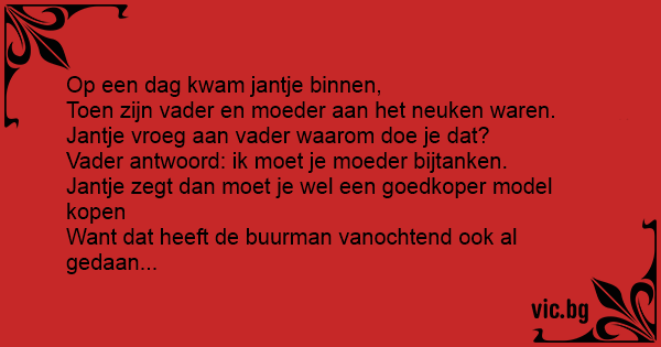 Vader antwoord: ik moet je moeder bijtanken.