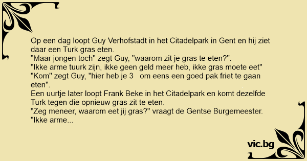 Op een dag loopt Guy Verhofstadt in het Citadelpark in Gent en hij ziet daar een Turk gras eten.