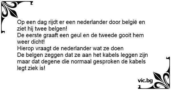 Op een dag rijdt er een nederlander door belgië en ziet hij twee belgen!