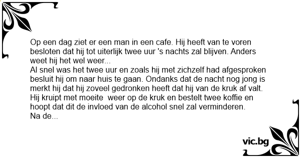 Op een dag ziet er een man in een cafe. Hij heeft van te voren besloten dat hij tot uiterlijk twee uur 's nachts zal blijven. Anders weet hij het wel weer...