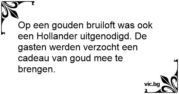 Op een gouden bruiloft was ook een Hollander uitgenodigd. De gasten werden verzocht een cadeau van goud mee te brengen.