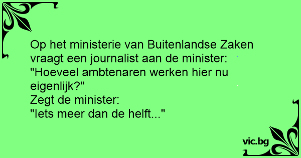 Op het ministerie van Buitenlandse Zaken vraagt een journalist aan de minister: