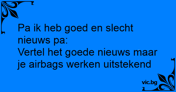 Vertel het goede nieuws maar je airbags werken uitstekend
