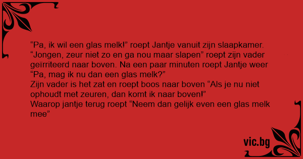 Waarop jantje terug roept “Neem dan gelijk even een glas melk mee”